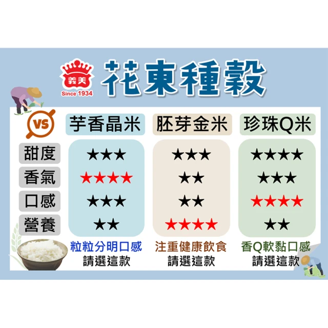 義美 義美花東種穀米1.5kg系列 _任選4包(全榖糙米/芋香晶米/珍珠Q米/胚芽金米)
